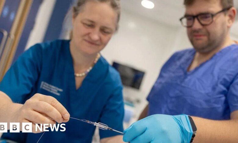 Prof Iris Grunwald, of the University of Dundee, performed the remote thrombectomy – the removal of blood clots after a stroke – on a human cadaver that had been donated to medical science.