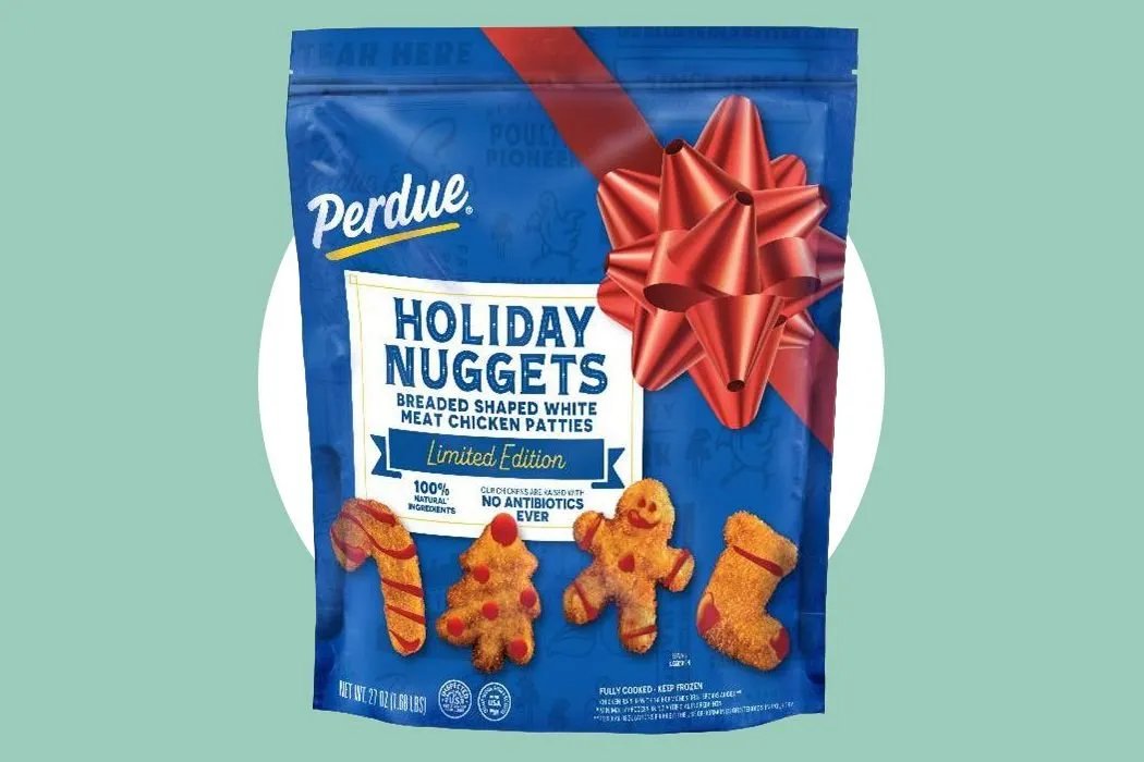 - Perdue is releasing limited-edition holiday chicken nuggets in festive shapes — candy cane, Christmas tree, gingerbread man, and stocking — made with white meat.