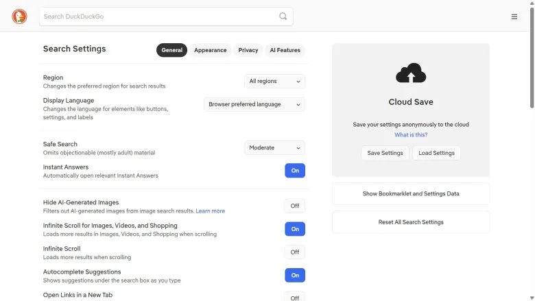- Visit the DuckDuckGo settings page.
