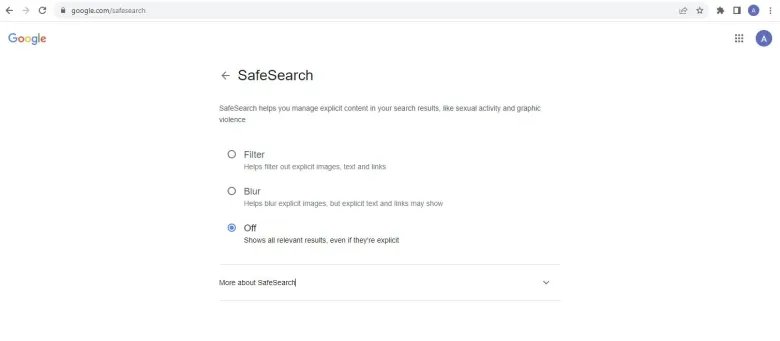 SafeSearch و the و off – تفاصيل مهمة