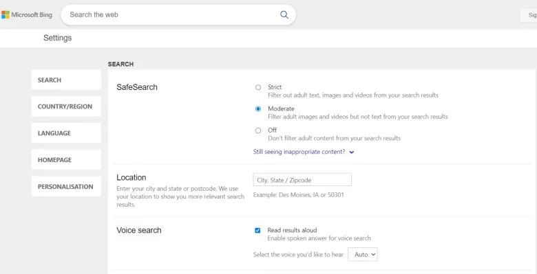How to turn off Bing’s SafeSearch feature