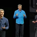 Craig Federighi, Eddy Cue, and John Ternus will be divvying up Williams’ divisions. | Images credit — Apple