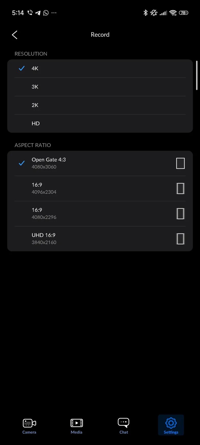 After updating Blackmagic Camera to v3.1, head over to the app’s settings > Resolution. You will see a 4:3 Open Gate aspect ratio option. Select that followed by the resolution. Depending on your device, you may be limited to recording open gate aspect ratio videos in 3K, 2K, or lower resolution.