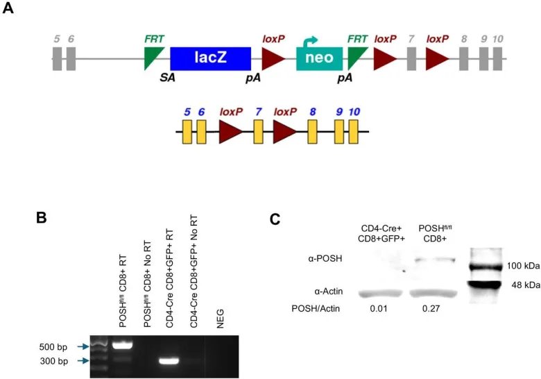 Structural protein POSH plays a key role in activating T cells of the immune system and directing them to infected target cells. During an immune response, T cells must mature and specialize to fight a specific infection. However, without the POSH protein, these cells usually do not survive long enough to complete this process.