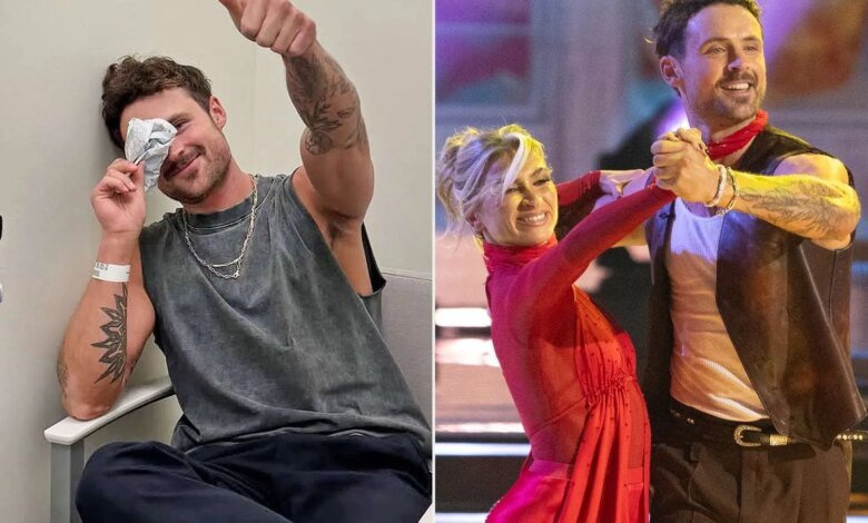 The Traitors alum, 33, shared a post on Instagram on Saturday, Oct. 25, that featured photos of his newly broken nose — an injury he suffered after his pro partner, Daniella Karagachgave him an accidental elbow to the face.